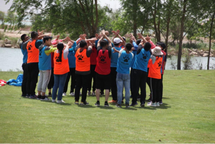 在藍(lán)天白云與綠茵鮮花相互映襯著的自然風(fēng)景下,戶外拓展活動(dòng)正式拉開(kāi)了序幕。40余名職工分成四組,取隊(duì)名、定隊(duì)號(hào)、定隊(duì)歌及設(shè)計(jì)隊(duì)旗并且用獨(dú)特的方式展示出來(lái)。