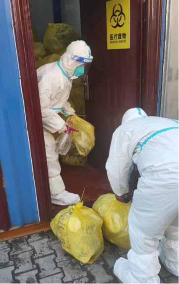 寒冬中有這樣一群人,他們?nèi)粘鐾須w,往返于三區(qū)各大醫(yī)院、隔離酒店、隔離卡點(diǎn)、傳染病醫(yī)院、發(fā)熱門診,穿梭在城區(qū)各大小區(qū),他們?nèi)蔽溲b,身著防護(hù)服,將一袋袋醫(yī)療廢物垃圾,安全轉(zhuǎn)運(yùn)到集中處置點(diǎn),徹底阻斷醫(yī)廢垃圾造成二次感染風(fēng)險(xiǎn),牢牢守住防疫最后一道防線。自從10月初以來,市污水處理公司醫(yī)廢垃圾轉(zhuǎn)運(yùn)組全體工作人員以廠為家、閉環(huán)管理已經(jīng)40余天,他們放棄與家人團(tuán)聚,與親人相伴,日復(fù)一日,兩點(diǎn)一線,晝夜兼程,在醫(yī)廢垃圾安全轉(zhuǎn)運(yùn)戰(zhàn)場上默默付出,逆風(fēng)而行,用行動為抗擊疫情、阻斷病毒傳播貢獻(xiàn)自己的力量。