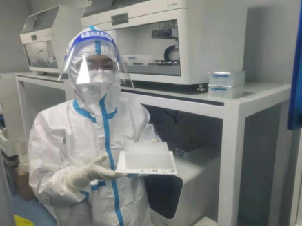 防護服、隔離衣、N95口罩、護目鏡、雙層手套、鞋套......全副武裝后,既不能喝水,也不能上廁所,在實驗室里一待就是七八個小時。在這次檢驗中,李寶華所在的二區(qū)樣品制備間每班四個人,流水線作業(yè),醫(yī)院檢驗科的工作人員負責(zé)將標(biāo)本加入到提取試劑孔中,李寶華負責(zé)將樣本放在核酸提取儀里提取,然后將提取好的核酸交給下一位工作人員加入到八連排試管架中,然后四個人輪換的把八連管的蓋扣緊。在這個特別費手指頭的環(huán)節(jié),每個人都要連扣幾板,按著按著手指痛的就按不動了??此坪唵蔚墓ぷ?,卻要求全神貫注,一絲不茍,認真的拆分、上架,同時要做好個人手衛(wèi)生,無數(shù)次重復(fù)的實驗,需要嚴謹細心的態(tài)度,確保實驗結(jié)果準確無誤。一天工作下來,滿身是汗,耳朵也被口罩壓出紅印子,面部也有深深的壓痕。雖然核酸檢測工作很艱辛,李寶華卻無悔加入到這支平凡而不普通的隊伍。防疫戰(zhàn)線上,無論是下沉小區(qū)值守的“守衛(wèi)者”,還是核酸檢測的“掃雷員”,都都抗議路上逆行孤勇者,他們用點點微光,匯聚起戰(zhàn)勝疫情的強大力量。我們向他(她)們致敬,感謝他們的每一份付出。