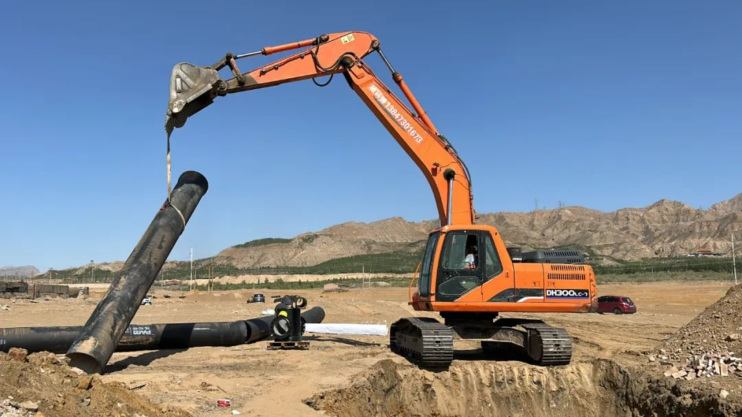 近日,記者在海勃灣區(qū)的南部?jī)羲畯S輸水管道項(xiàng)目現(xiàn)場(chǎng)看到,隨著挖掘機(jī)緩緩升起,一根長(zhǎng)約6米的給水管被緩慢放進(jìn)坑道。隨后施工