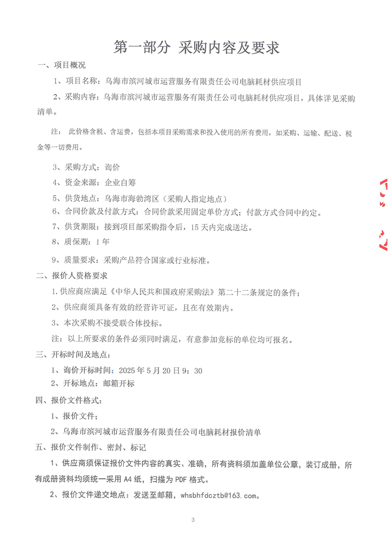 - 2025-11-07烏海市濱河城市運營服務(wù)有限責任公司中大型電動掃地機(車)供應(yīng)項目詢價文件