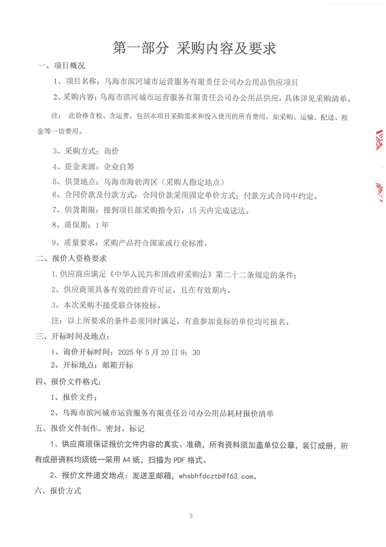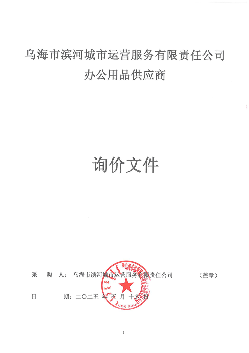 烏海市濱河城市運(yùn)營服務(wù)有限責(zé)任公司辦公用品供應(yīng)商詢價(jià)文件