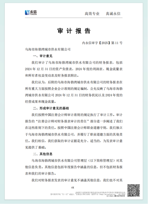 - 2025-10-22烏海市海勃灣城市供水有限公司2025年第三季度信息公開
