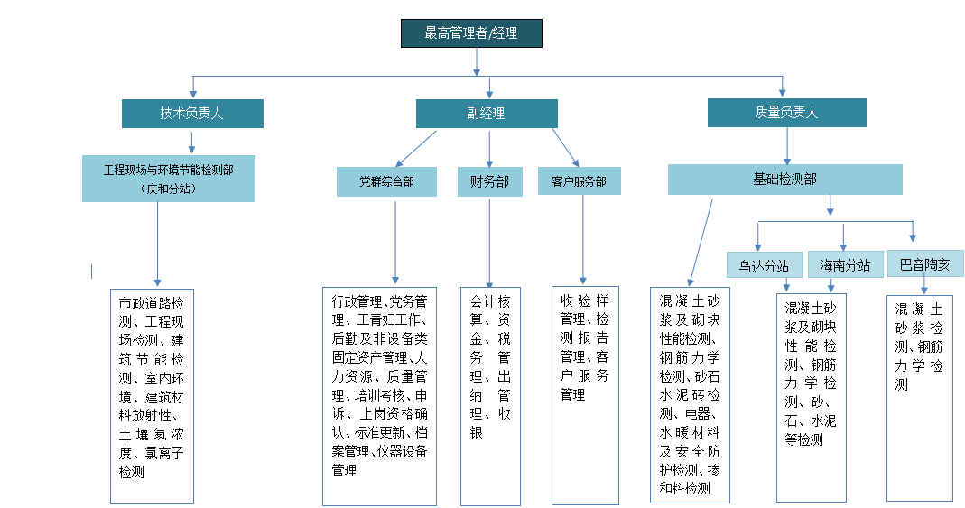 公司現(xiàn)設(shè)5個部門,分別為黨群綜合部、財務(wù)部、客戶服務(wù)部、基礎(chǔ)檢測部、工程現(xiàn)場及環(huán)境節(jié)能檢測部。公司現(xiàn)有員工38人,其中本科學(xué)歷31人、大專學(xué)歷2人、大專以下5人;二級注冊結(jié)構(gòu)工程師1名,高級職稱7名,中級職稱10名,初級職稱13名。
