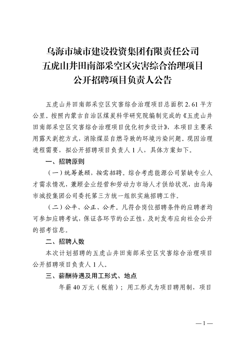 烏海市城市建設(shè)投資集團有限責(zé)任公司五虎山井田南部采空區(qū)災(zāi)害綜合治理項目公開招聘項目負責(zé)人公告