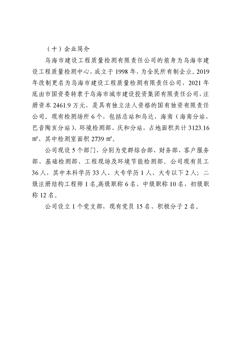 - 2025-03-10烏海市建設(shè)工程質(zhì)量檢測有限責(zé)任公司2024年度信息公開報告