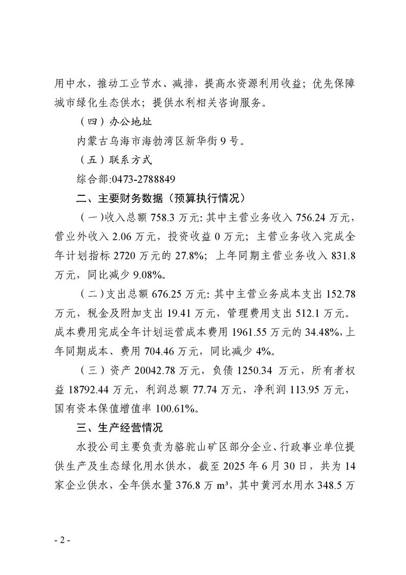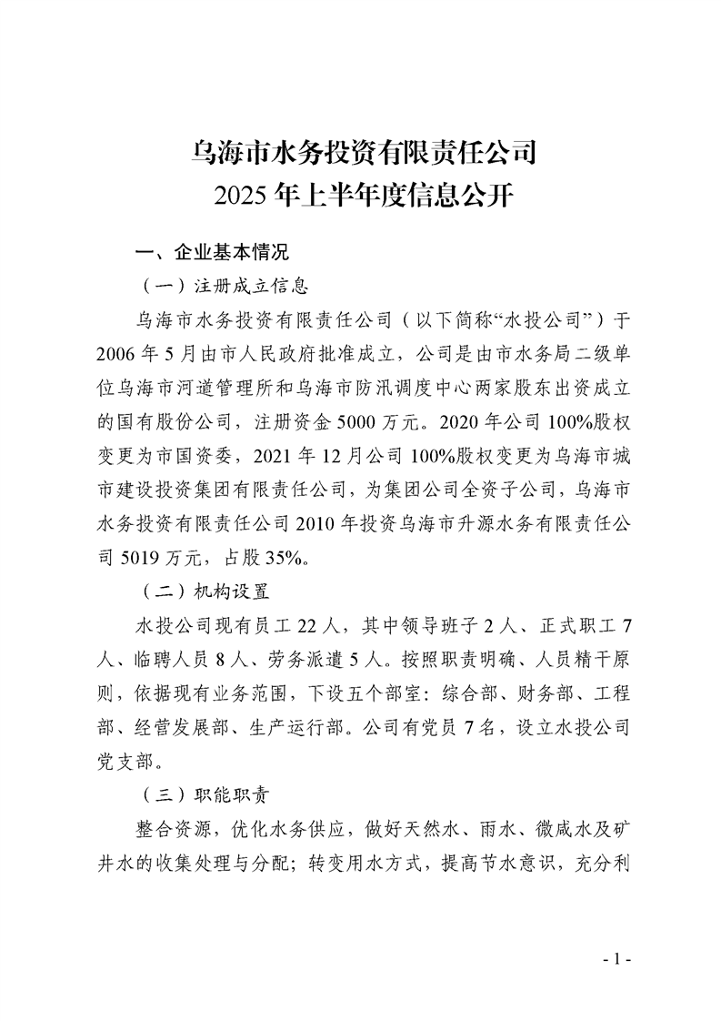- 2025-10-22烏海市水務(wù)投資有限責(zé)任公司2025年第三季度信息公開