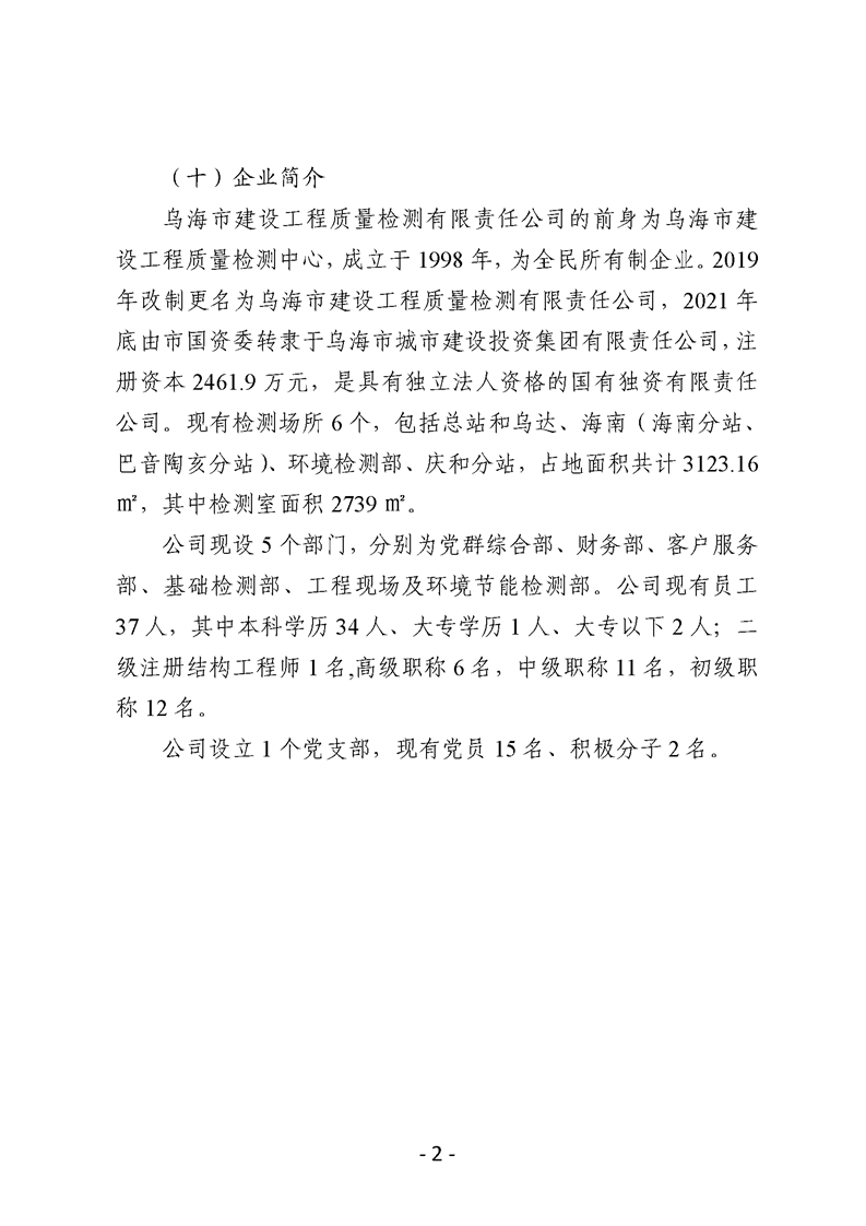 - 2025-03-10烏海市建設(shè)工程質(zhì)量檢測(cè)有限責(zé)任公司2024年度信息公開(kāi)報(bào)告