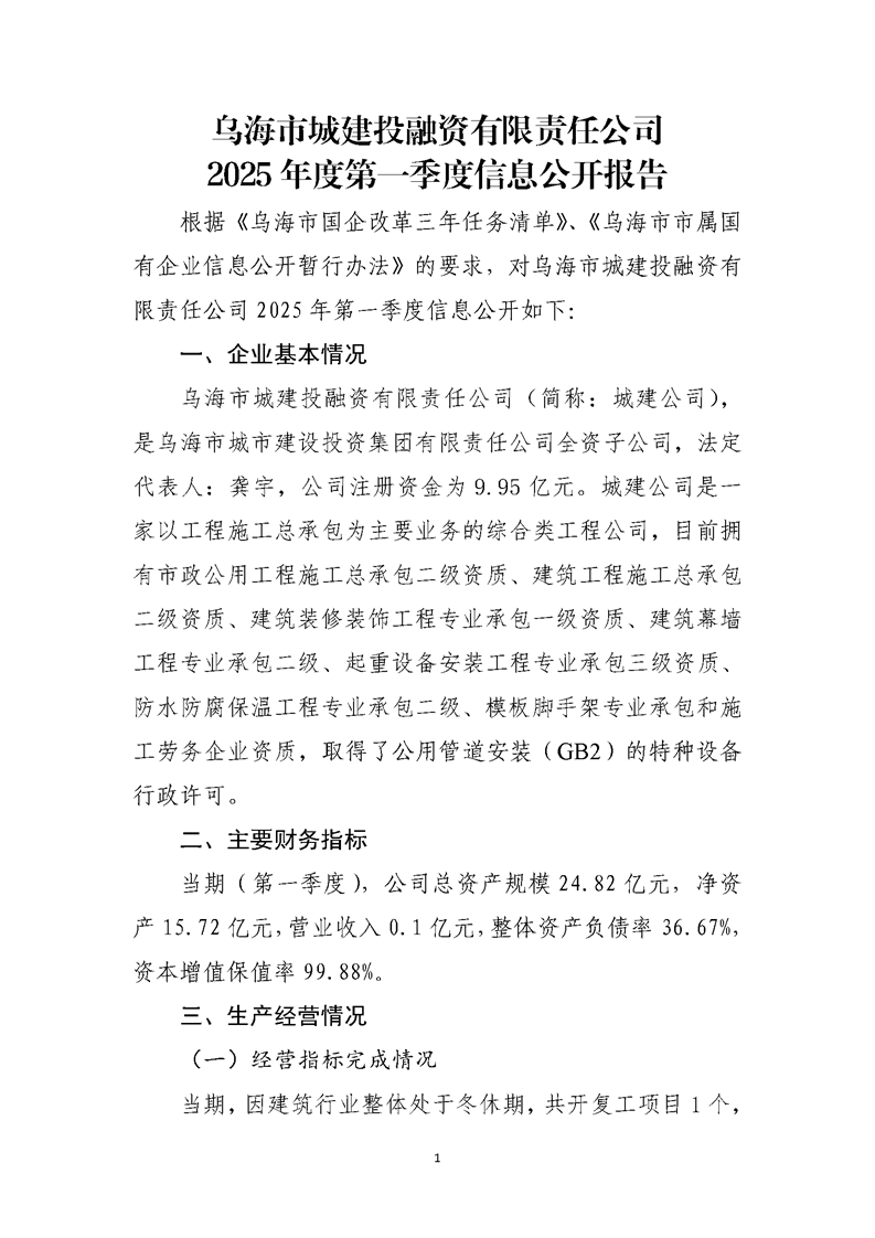 - 2025-10-22烏海市城建投融資有限責(zé)任公司2025年度第三季度信息公開(kāi)