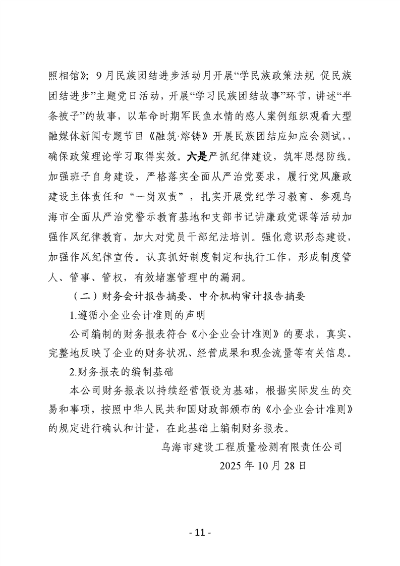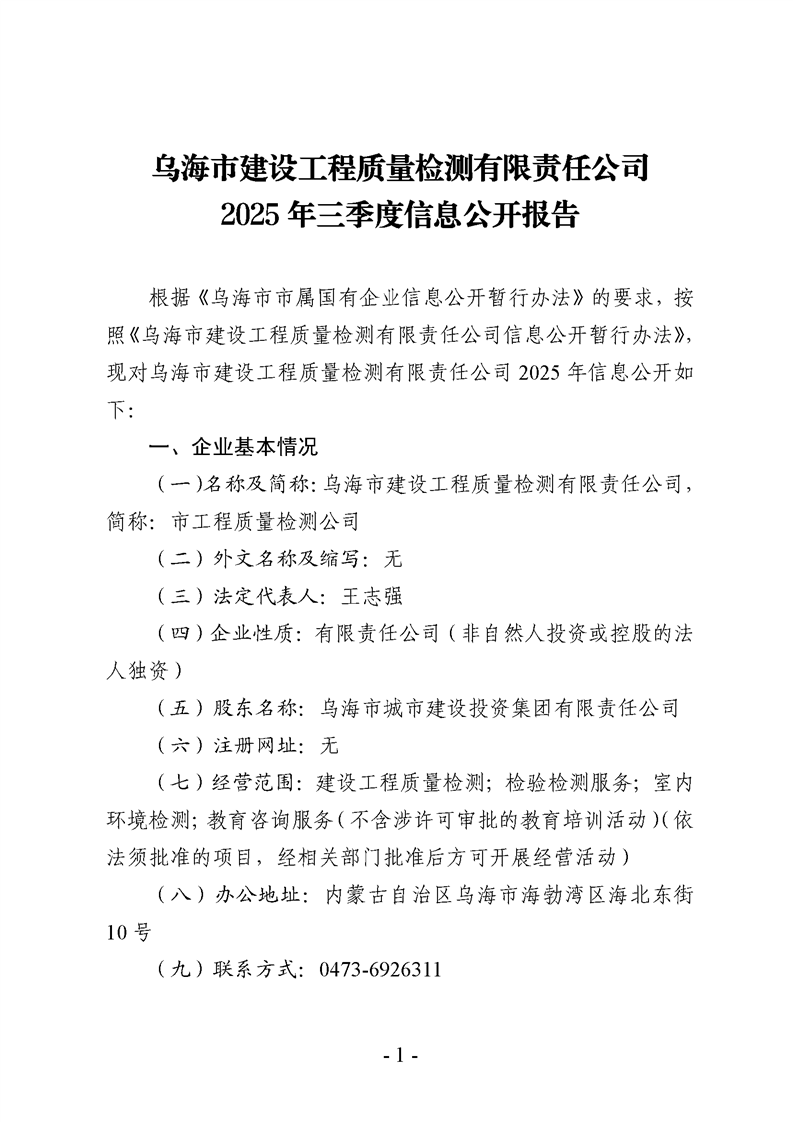 烏海市建設(shè)工程質(zhì)量檢測有限責(zé)任公司2025年三季度信息公開