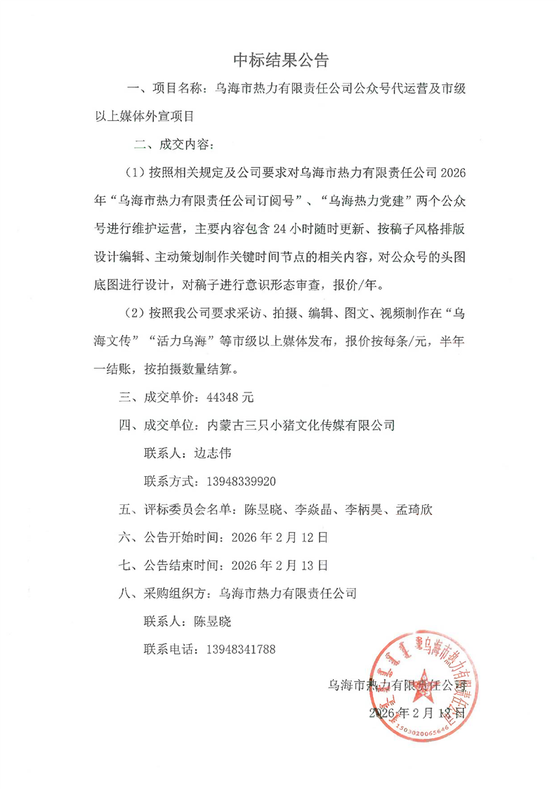 - 2026-03-132026年烏海市澤匯園林綠化工程有限公司育花溫室勞務(wù)中標(biāo)(成交)結(jié)果公示