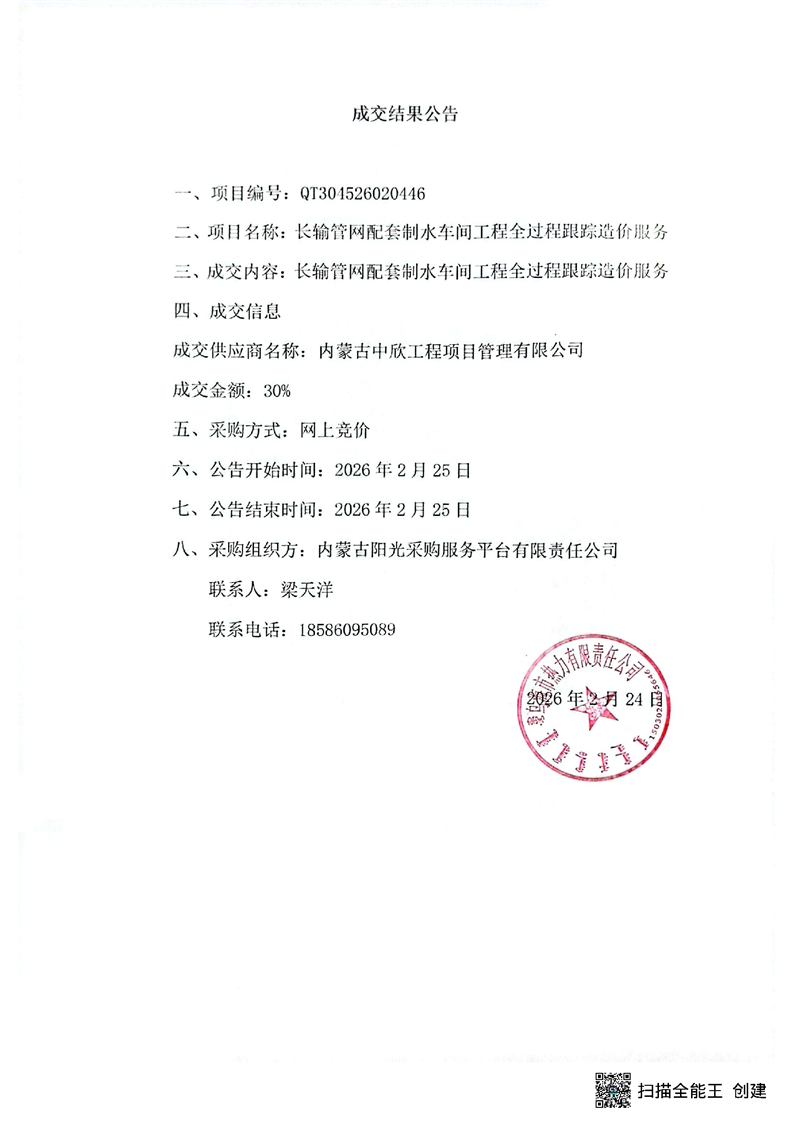 - 2026-03-13長輸管網(wǎng)配套制水車間工程(工程質(zhì)檢服務(wù))【招標(biāo)計劃】