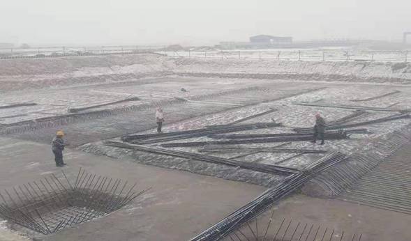 (城建公司:低碳產(chǎn)業(yè)園污水廠工程冒雪綁扎鋼筋)